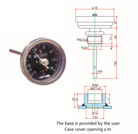 2、溫度計的溫包在使用安裝及運輸中,應避免碰撞、彎曲和變形。